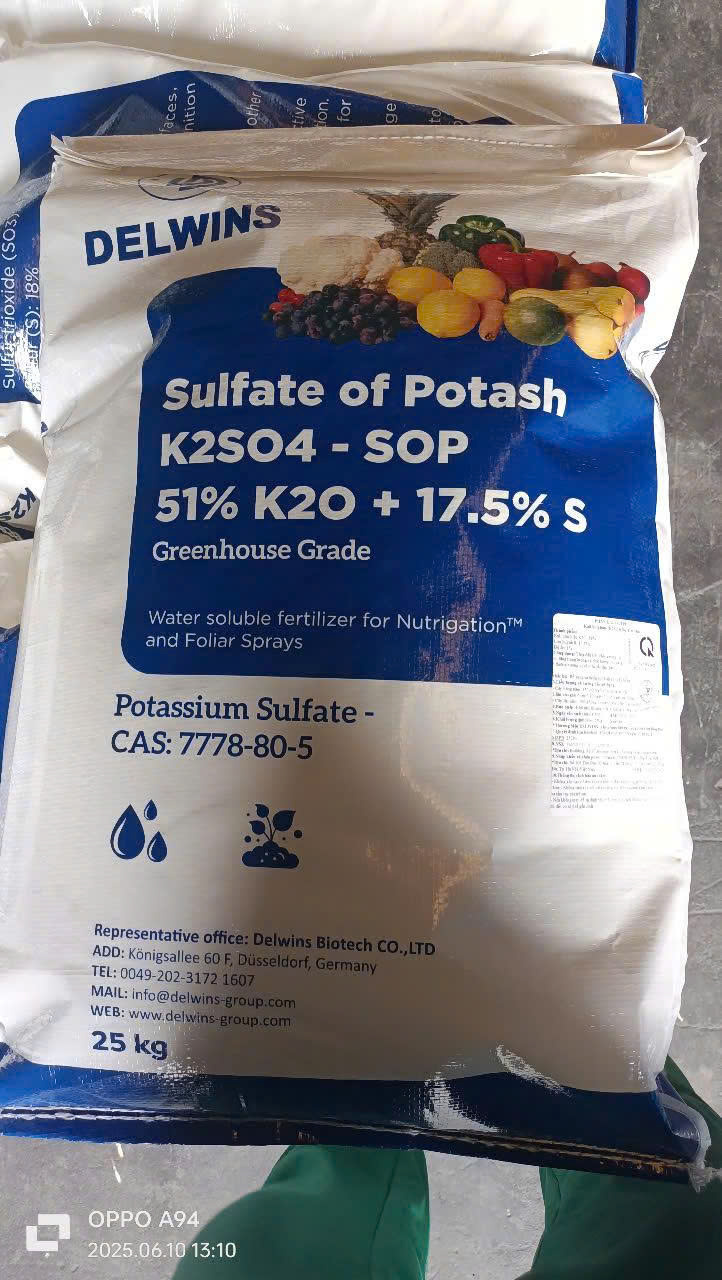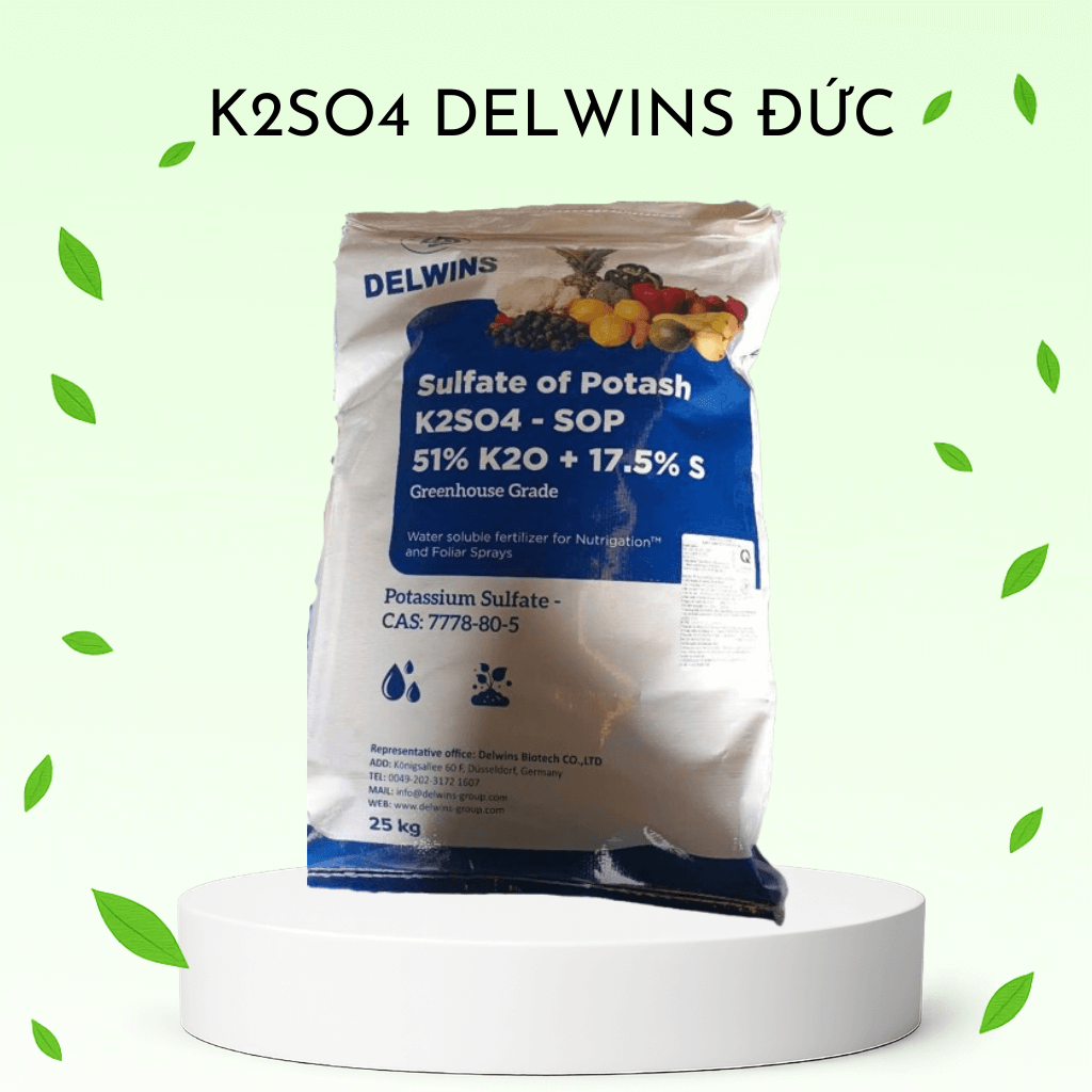 Kali Sunphat (K₂SO₄ – SOP) của Delwins là sản phẩm cao cấp, được nhập khẩu từ Đức. Phân bón chứa 51% K₂O và 17.5% lưu huỳnh (S), giúp cây trồng phát triển khỏe mạnh, tăng năng suất và chất lượng nông sản, đặc biệt phù hợp cho nông nghiệp nhà kính.